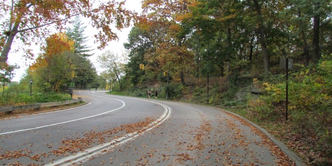 A few days ago, when I reversed course, I found myself suddenly enthralled by a curve in the road in the northern part of Central Park, that I rarely notice as anything other than a curve. It struck me as magnificent. Leaves that had turned the crisp yellows and burnt oranges of autumn had blown from trees and lined the road, flooding this unassuming curve with majestic brightness.